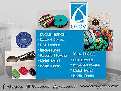 Akay Düğme, farklı stillere uygun tasarımlarda ürettiği düğmeler ile moda tasarımcılarına çok sayıda alternatif sunuyor. Üzerine marka yazılabilen düğme tasarımları ile tasarımcılara ilham veriyor. Tüm zevklere hitap eden renk skalasıyla da dikkat çeken düğmeler üreten firma, toptan ve perakende satışlarıyla imalathanesinden Türkiyenin/dünyanın pek çok noktasına ulaşmaktadır. Farklı tercihlere uygun materyal çeşitleriyle de tercih edilen Akay Düğme ürünleri hem tasarım hem de ürün kalitesi olarak konfeksiyon dünyasının önemli isimleri arasında yer almaktadır.