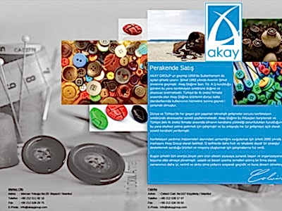 Kurulduğu gün benimsediği ilkelerden vazgeçmeyen Akay Düğme, köklü geçmişi ve işine verdiği özenle kadın giyim, erkek giyim ve ilgili sektörlerin en önemli iş ortaklarından biridir. Küçükköy/Gaziosmanpaşa’da bulunan tesislerinde başta polyester olmak üzere korozo, deri, istiridye, sedef, metal ve plastik malzemelerden tekstil aksesuarları üretmektedir. 24 saat 365 gün aralıksız üretime devam eden Akay Düğme, %100 yerli üretim teknikleri kullanarak elde ettiği ürünlerini tüm Türkiye’nin dört bir yanına ve dünyanın 45 ülkesine ulaştırır.